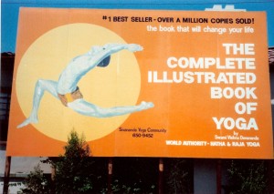 One of the first tasks I had when I came on as director was to supervise the construction of the sign pictured below, which covered the chimney and window on the right side of the building. It was our way of getting some visibility on Sunset Boulevard for the community and Swami Vishnu’s best-selling book.