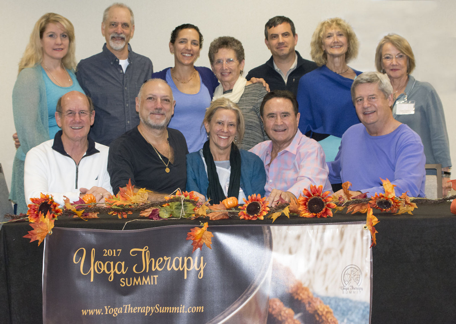 2017 Yoga Therapy Summit, Chicago, IL (aka the Desikachar students’ old-timey reunion!) Back row: Amy Wheeler, Gary Kraftsow, Kate Holcombe, Sonia Nelson, Chase Bossart, Laura Jane Mellencamp-Murphy, Clare Collins Front row: Richard Miller, Leslie Kaminoff, JJ Gormley, Larry Payne, John Kepner CREDIT: Lydia Mann